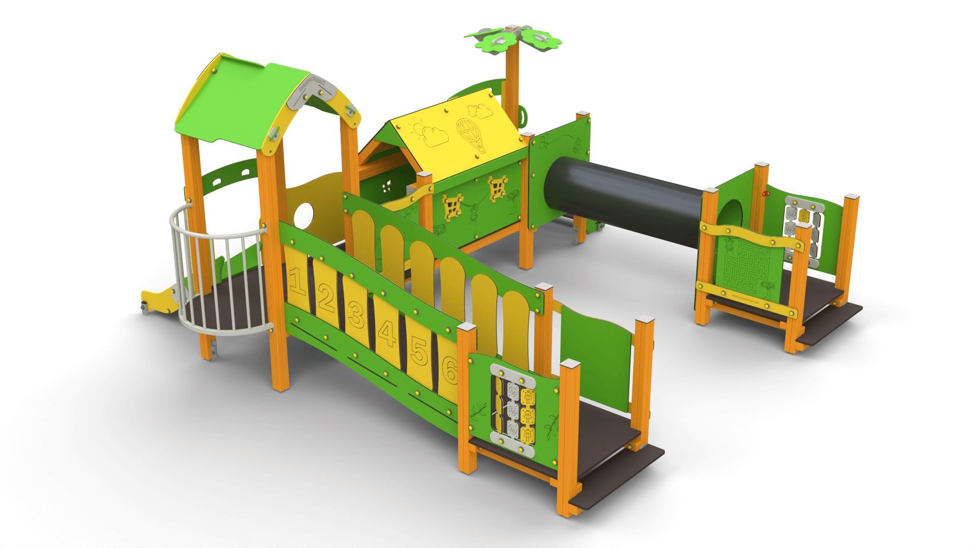Zjeżdżalnie o różnej wysokości – dostosowane do potrzeb dzieci o różnych umiejętnościach motorycznych. Zjeżdżalnie mogą być wyposażone w dodatkowe uchwyty i barierki dla łatwiejszego dostępu.