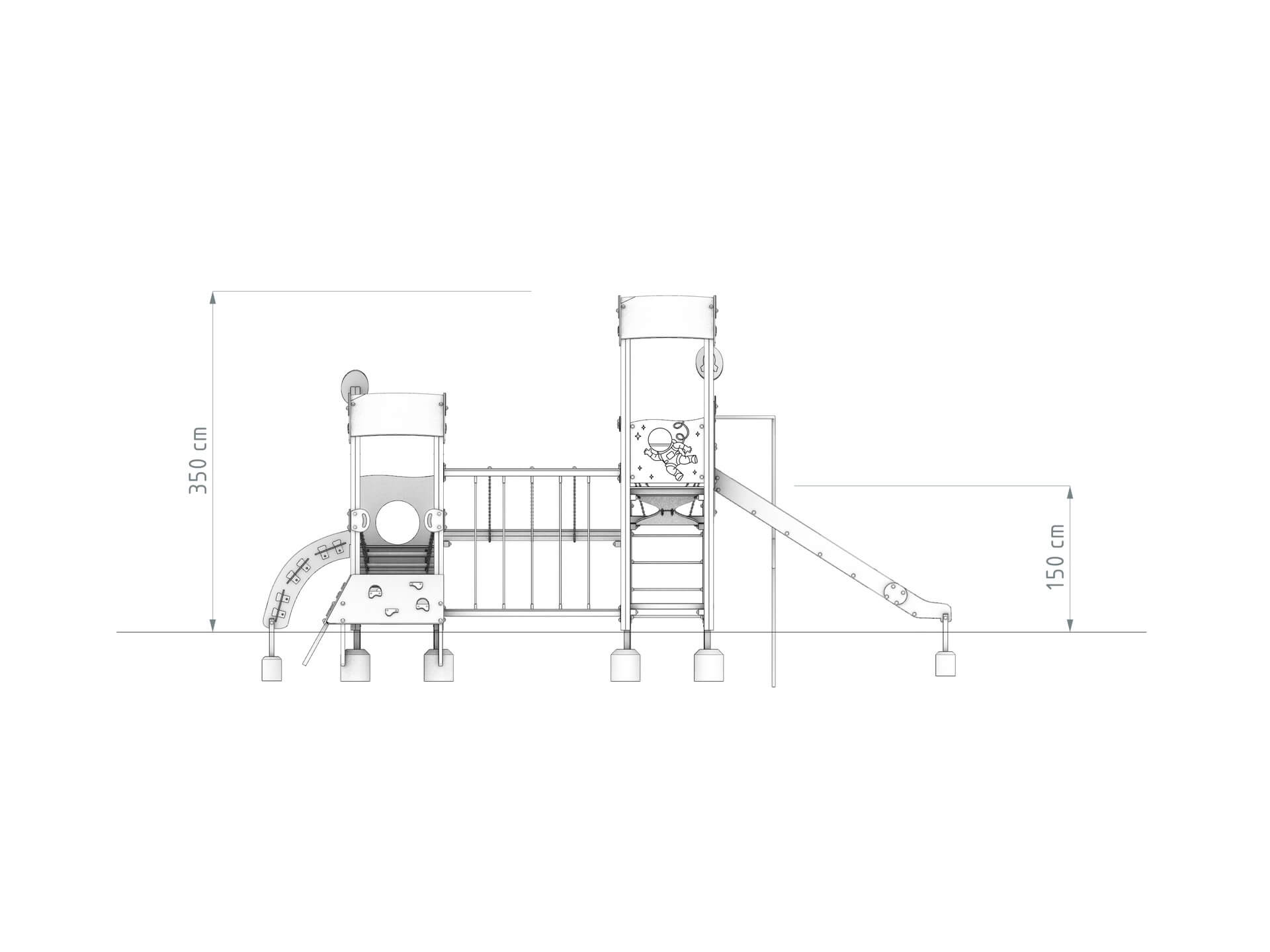 Plac zabaw kosmos jest zestawem, który charakteryzuje się bardzo atrakcyjnym designem zarówno dla dziewczynek, jak i dla chłopców. Pozwala przenieść się w kosmiczną podróż pełną gwiazd i różnorodnych planet.  Dominuje w nim kolorystyka błękitu, szarości, jak również jasnego brązu. Zestaw uzupełniony został także o jasnożółte elementy, które pozwalają na uzyskanie doskonałych, efektownych dekoracji. Nic więc dziwnego, że plac zabaw będzie cieszył się doskonałym designem, który będzie zachęcał do zabawy i kreatywnych zabaw dzieci w różnym wieku.
