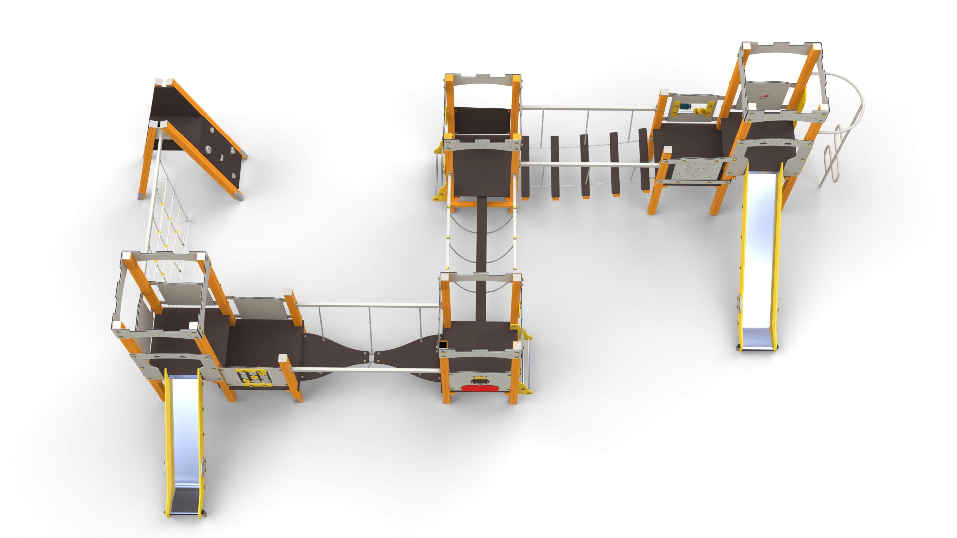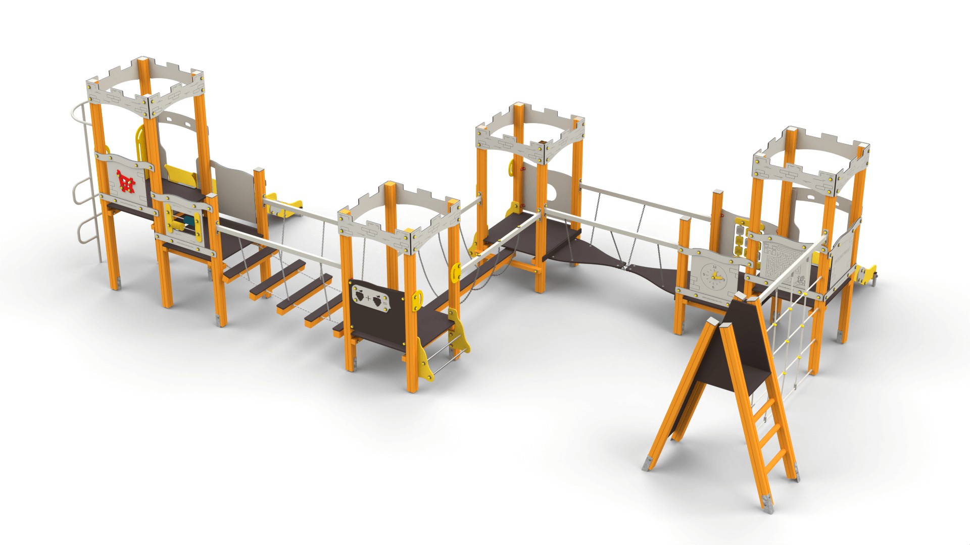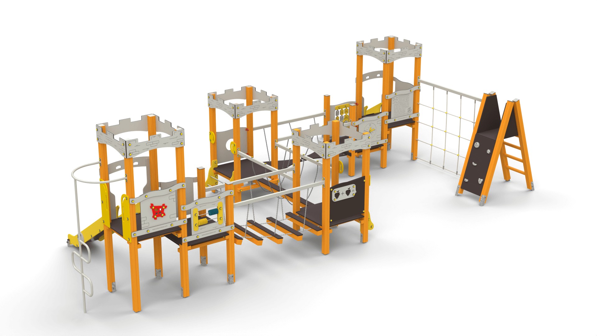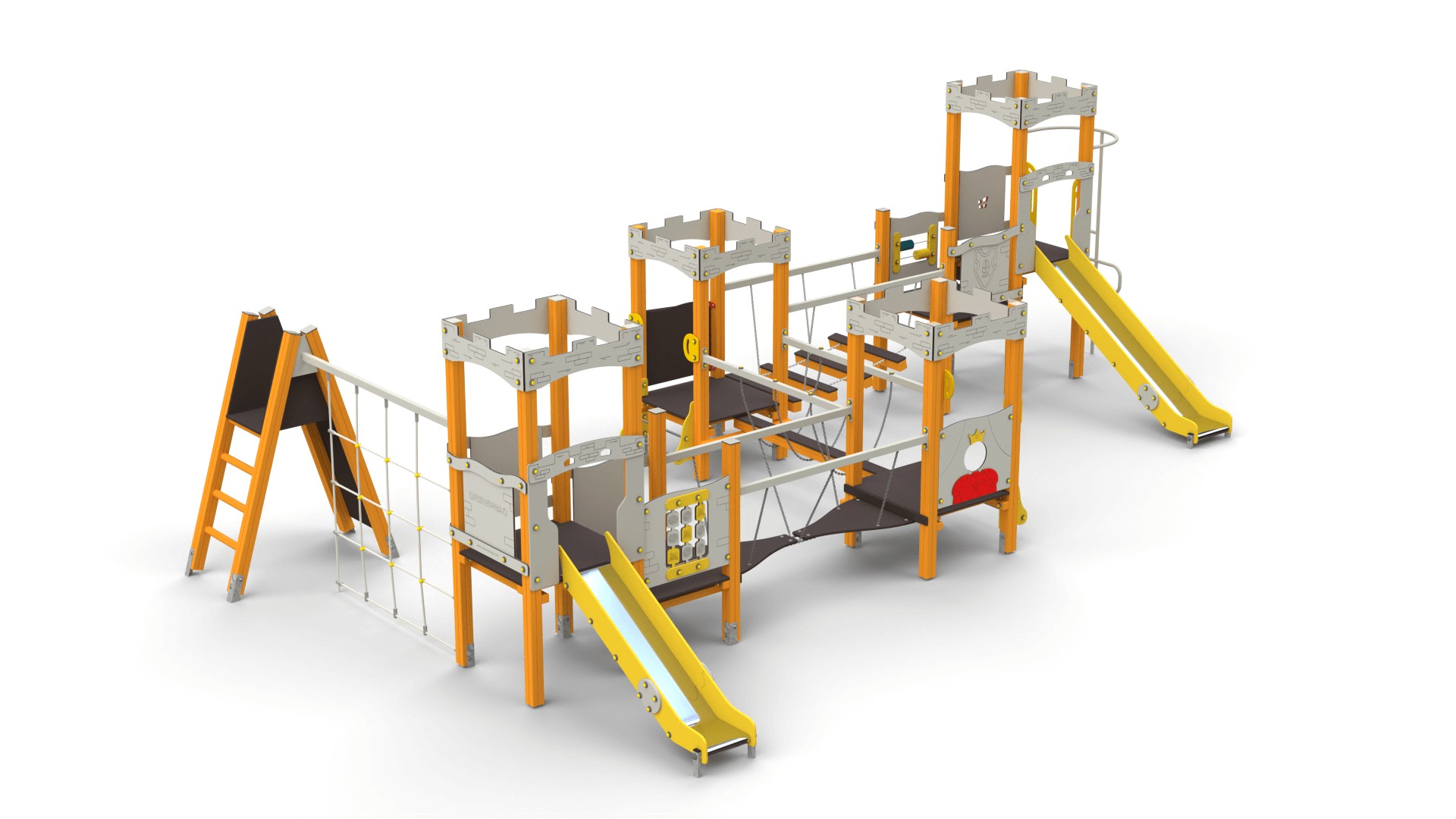 Zestawy placów zabaw zamki to konstrukcje pełne atrakcji, które rozbudzają wyobraźnię i zachęcają dzieci do aktywnej zabawy. W ich skład wchodzą m.in.: Wieże i baszty – stanowiące centralny punkt zabawy, idealne do obserwacji otoczenia. Zjeżdżalnie – różnorodne pod względem długości i kształtu, dostarczające radości każdej wyprawie. Pomosty linowe i mostki – rozwijające motorykę i koordynację ruchową. Tunele – pozwalające na ekscytujące przejścia pomiędzy sekcjami zamku. Elementy wspinaczkowe – zachęcające do aktywności fizycznej i rozwijania sprawności ruchowej. Każdy zestaw można dostosować do potrzeb oraz przestrzeni, tworząc unikalne kombinacje. Popularne modele to m.in. "Twierdza 7" czy "Twierdza 15A".