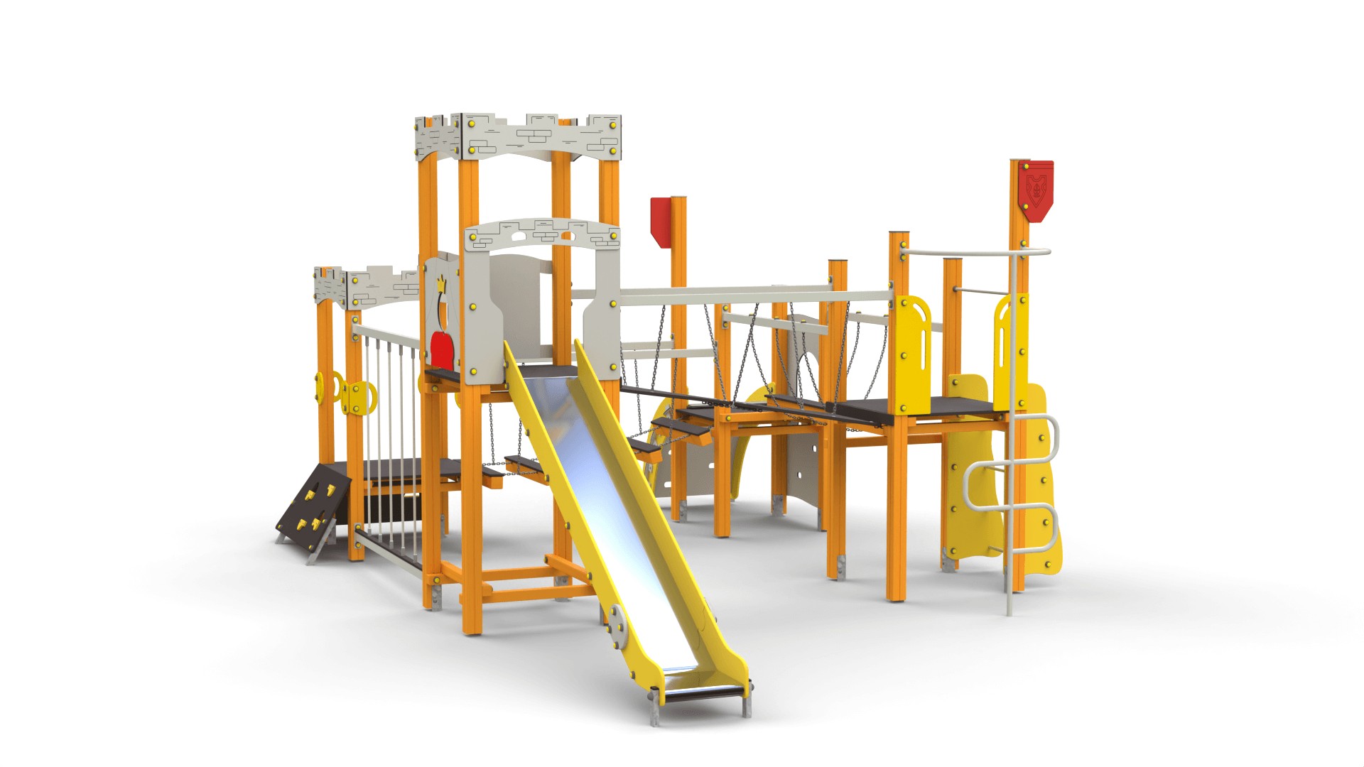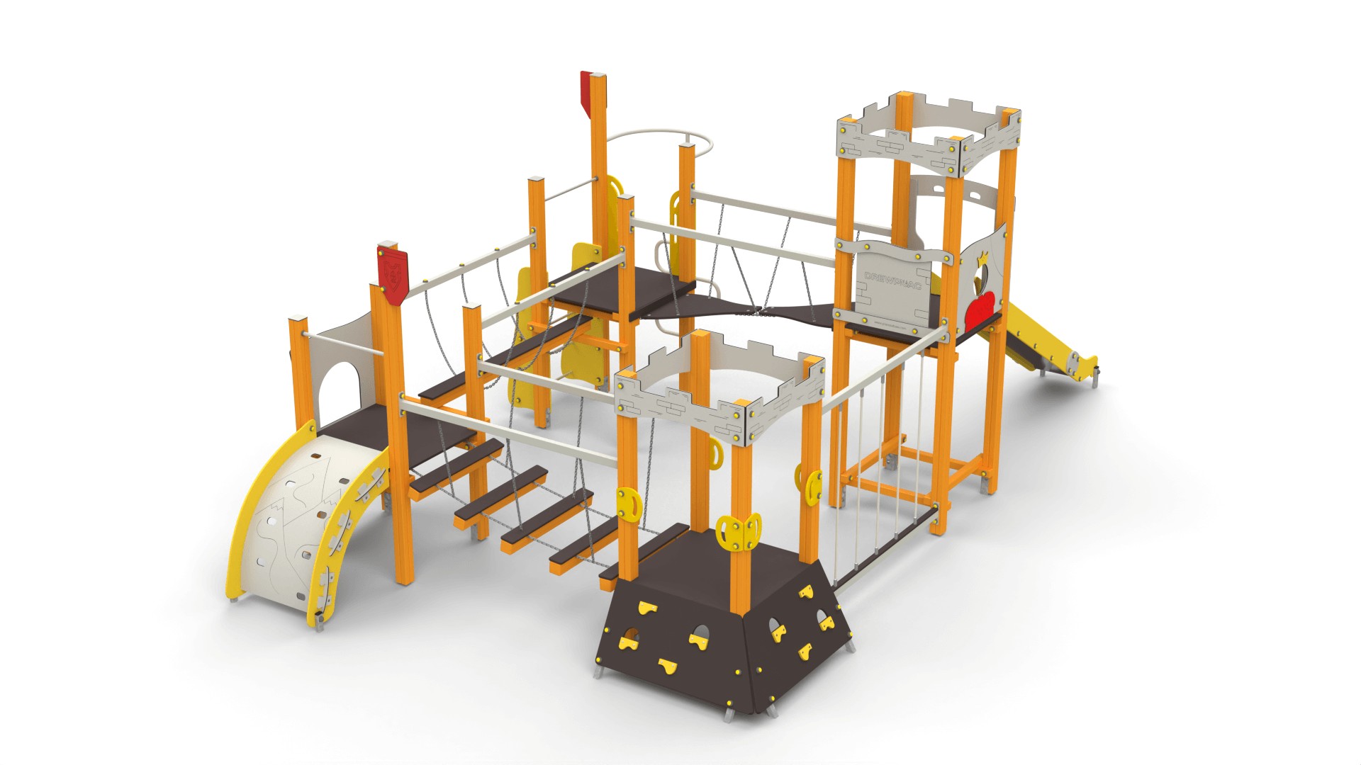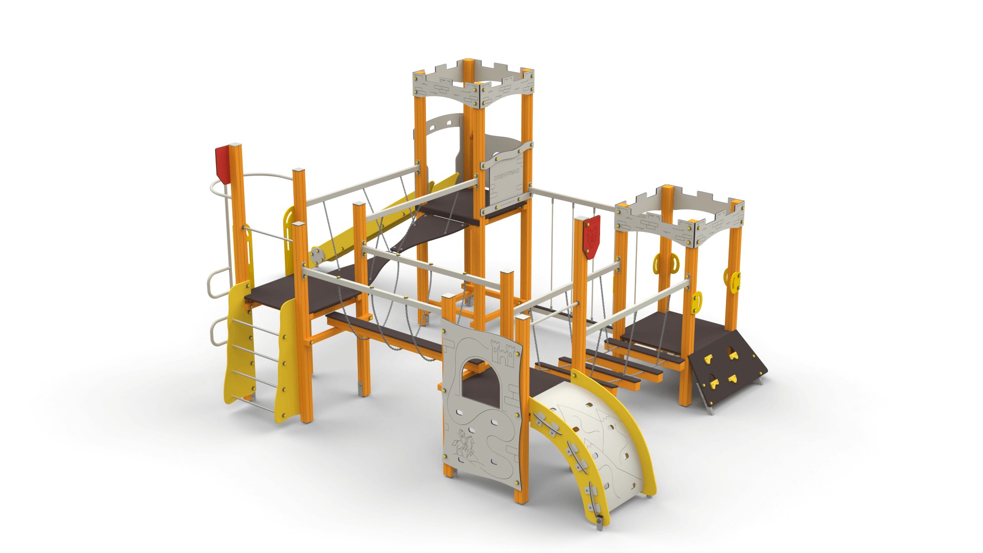 Zestawy placów zabaw zamki to konstrukcje pełne atrakcji, które rozbudzają wyobraźnię i zachęcają dzieci do aktywnej zabawy. W ich skład wchodzą m.in.: Wieże i baszty – stanowiące centralny punkt zabawy, idealne do obserwacji otoczenia. Zjeżdżalnie – różnorodne pod względem długości i kształtu, dostarczające radości każdej wyprawie. Pomosty linowe i mostki – rozwijające motorykę i koordynację ruchową. Tunele – pozwalające na ekscytujące przejścia pomiędzy sekcjami zamku. Elementy wspinaczkowe – zachęcające do aktywności fizycznej i rozwijania sprawności ruchowej. Każdy zestaw można dostosować do potrzeb oraz przestrzeni, tworząc unikalne kombinacje. Popularne modele to m.in. "Twierdza 7" czy "Twierdza 15A".
