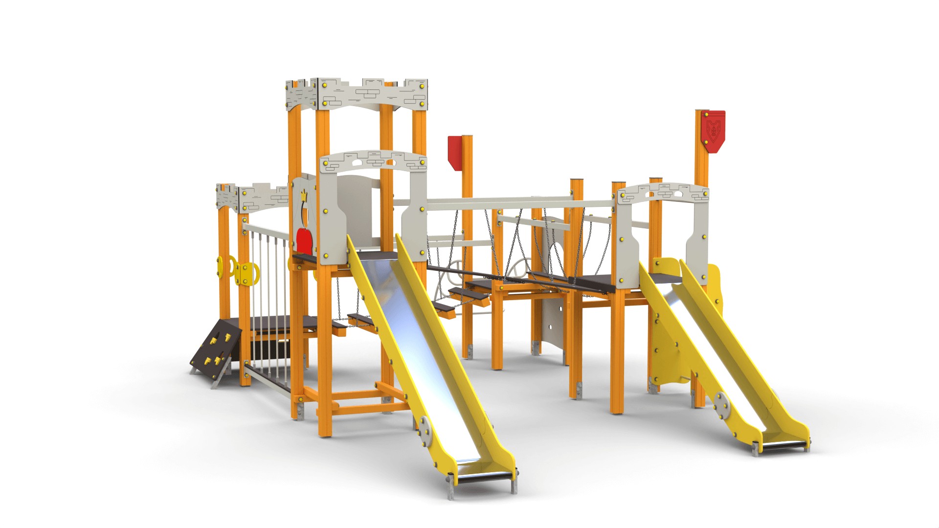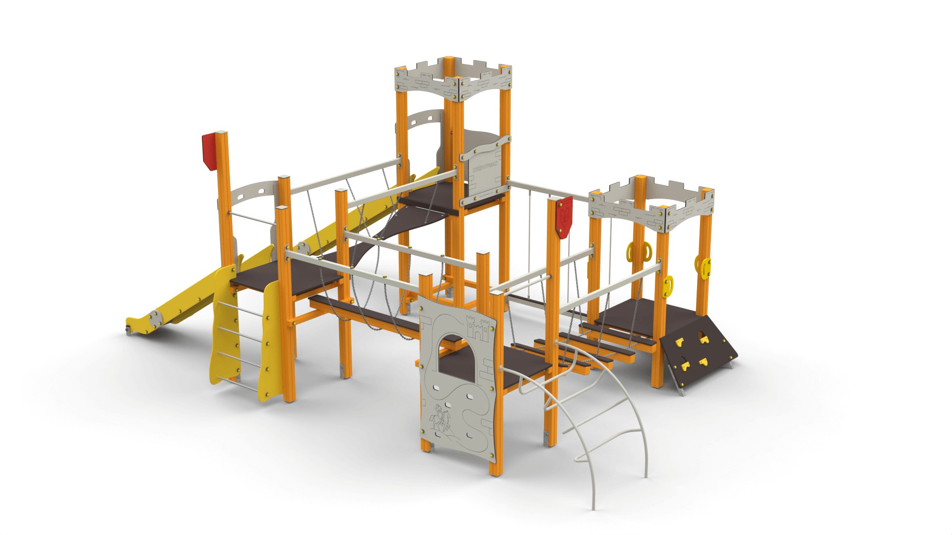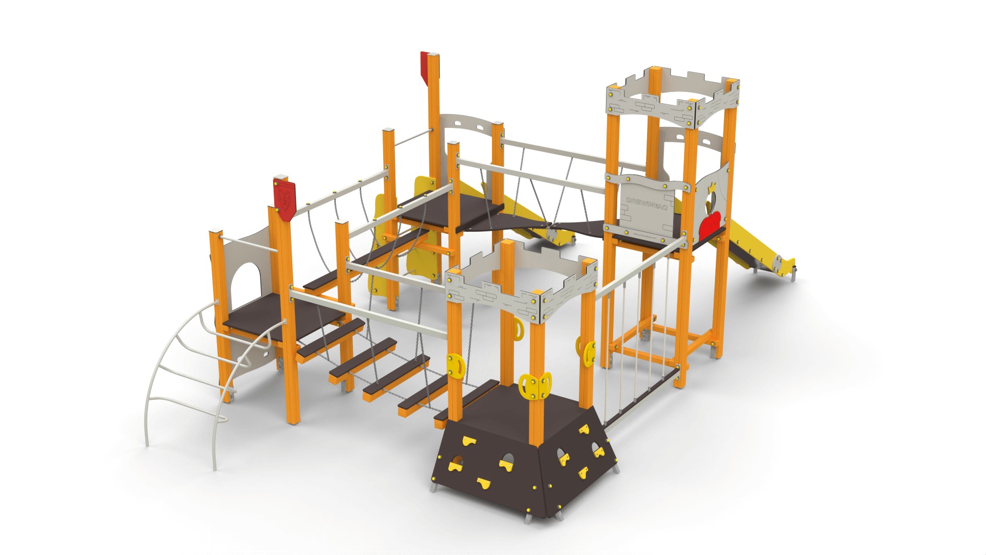 Zestawy placów zabaw zamki to konstrukcje pełne atrakcji, które rozbudzają wyobraźnię i zachęcają dzieci do aktywnej zabawy. W ich skład wchodzą m.in.: Wieże i baszty – stanowiące centralny punkt zabawy, idealne do obserwacji otoczenia. Zjeżdżalnie – różnorodne pod względem długości i kształtu, dostarczające radości każdej wyprawie. Pomosty linowe i mostki – rozwijające motorykę i koordynację ruchową. Tunele – pozwalające na ekscytujące przejścia pomiędzy sekcjami zamku. Elementy wspinaczkowe – zachęcające do aktywności fizycznej i rozwijania sprawności ruchowej. Każdy zestaw można dostosować do potrzeb oraz przestrzeni, tworząc unikalne kombinacje. Popularne modele to m.in. "Twierdza 7" czy "Twierdza 15A".